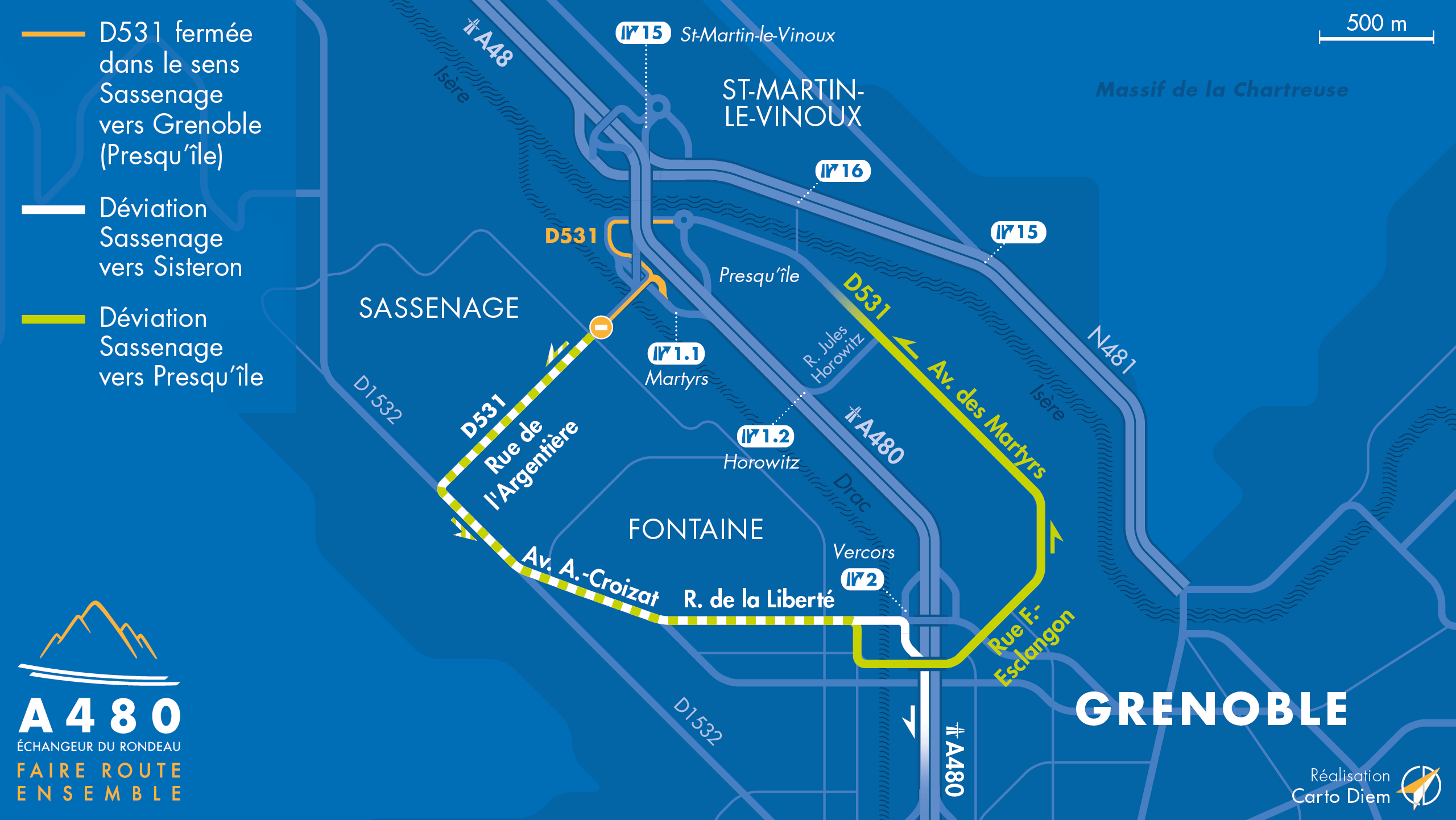En conséquence, les bretelles d’entrées du diffuseur de Saint-Martin-le-Vinoux (n°15) depuis le giratoire BUT seront également fermées.