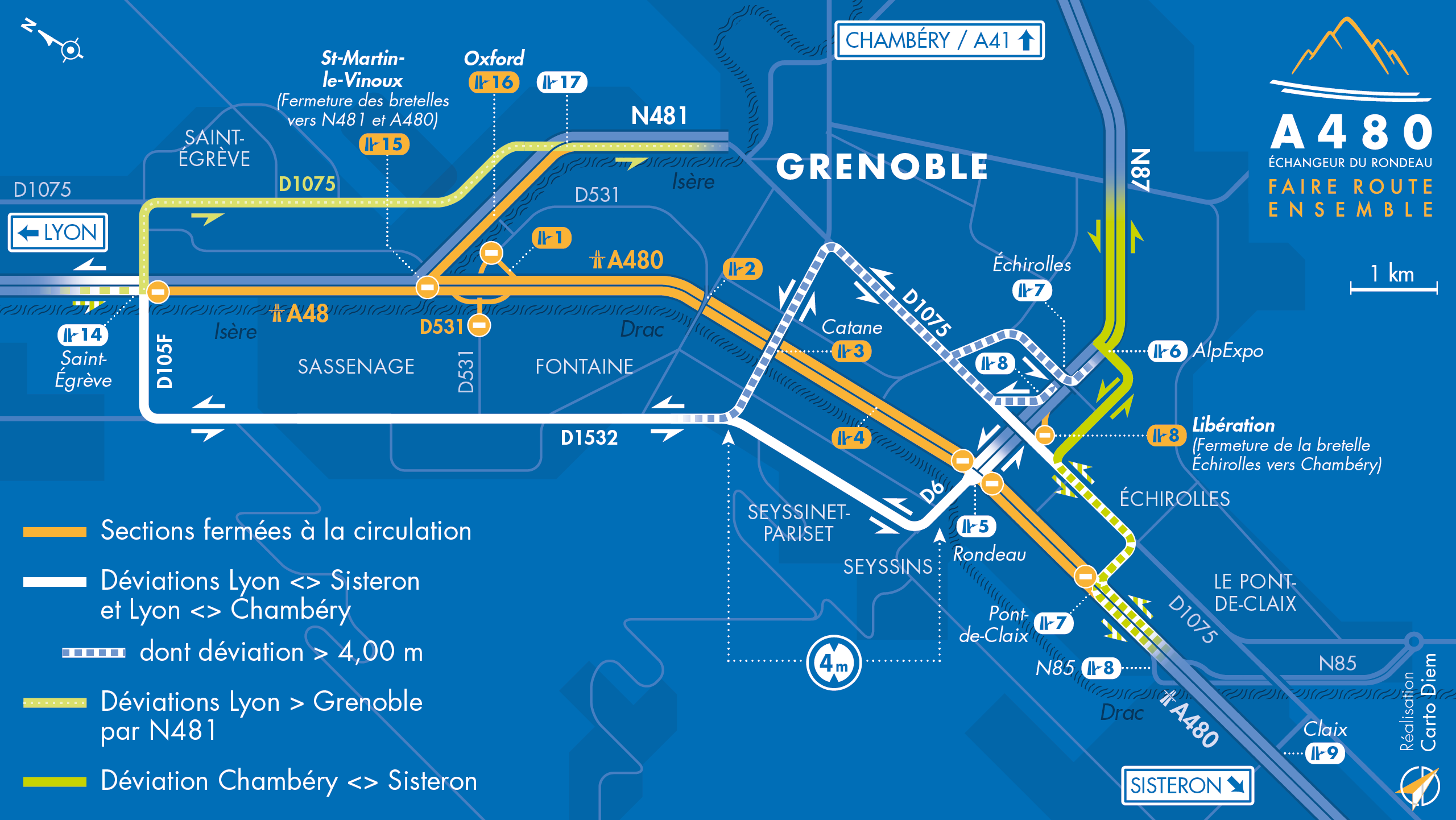 Dans le cadre des travaux d’aménagement de l’A480, une partie de l’autoroute sera fermée la nuit du jeudi 31 mars 2022.